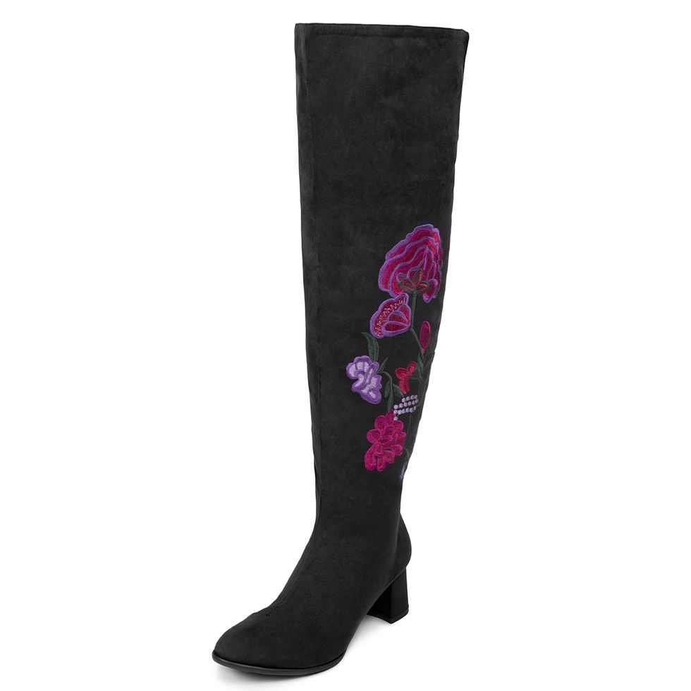 Shopping wide-fit shoes has long been the stuff of nightmares: An ignored corner of the fashion industry limited to punk, Hot Topic-esque buckle boots or the kind of faux suede platforms that disintegrate when they touch water. Things are changing, though. Whether you fancy a deep burgundy pair of thigh-highs or a hyper-trendy, embroidery-clad set, 2017’s options are ready and willing to serve you.