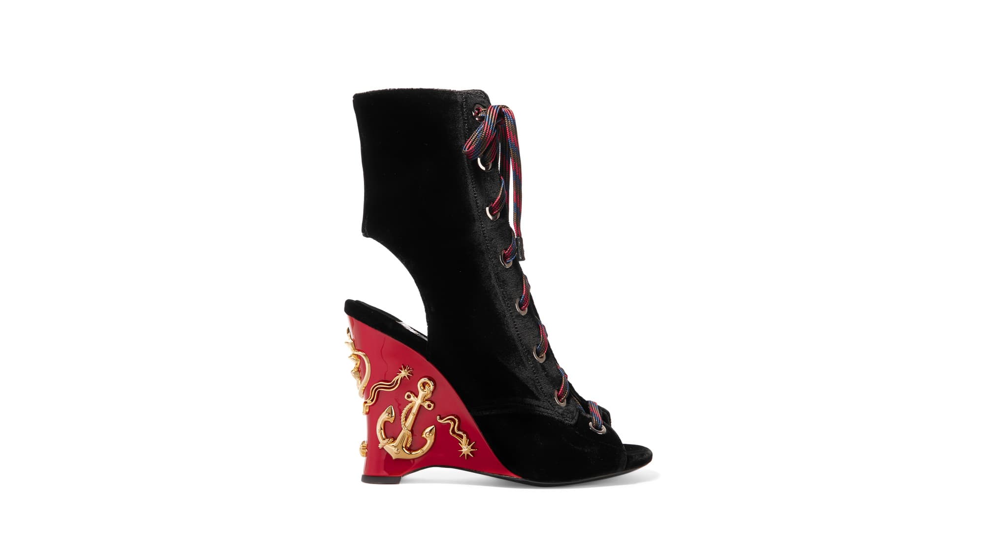 We’re suckers for a velvet boot. And any shoe that laces up the front. And any shoe that features an especially ornate heel. Bonus points if that includes gold anchors atop glossy red leather. The fact that this Prada pair manages to tick off all of these boxes can only mean one thing: we all need a pair (before they sell out).
