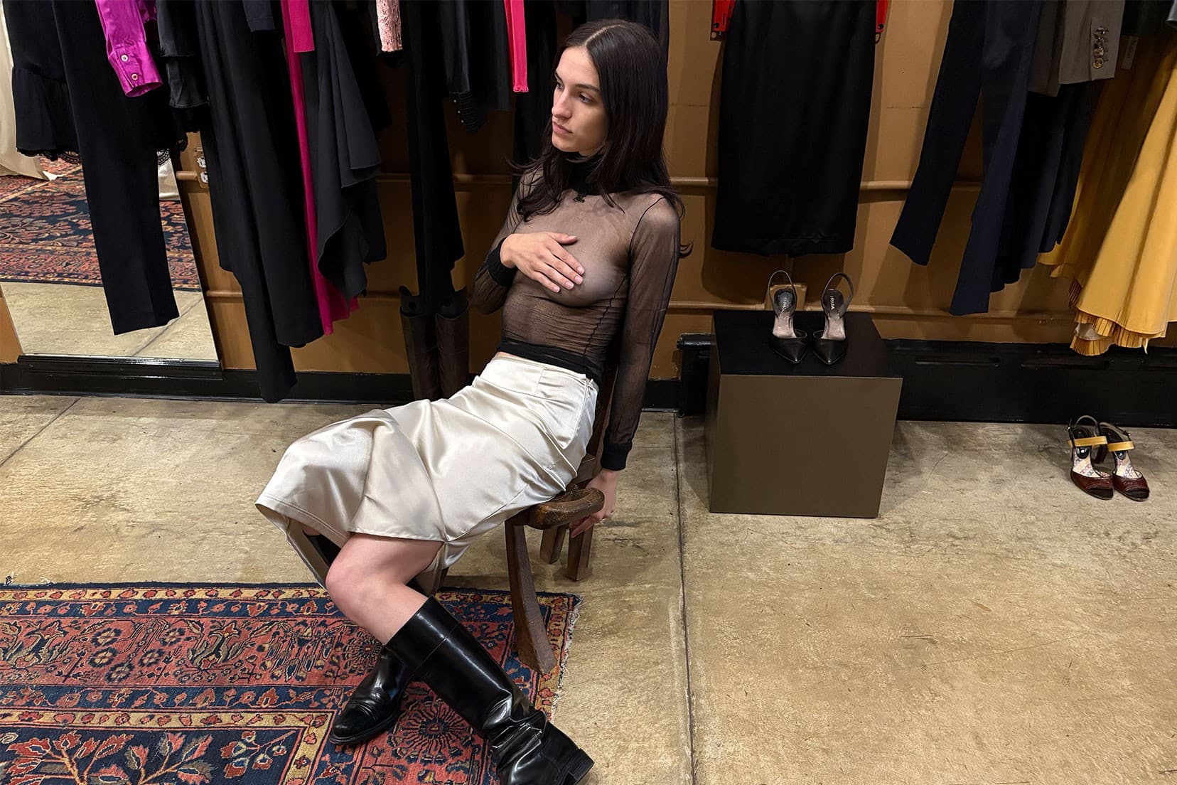 At Ending Soon—the designer vintage store on the Lower East Side that feels like stepping into someone's well-curated home—stylist, writer, and shop girl Blythe Kirkland clocks in for her shift. At first, Blythe comes across as shy and soft spoken. She is both acutely aware of the world around her, and at the same time exists in one of her own. She is also an extremely well dressed 21-year-old, carefully selecting pieces and putting outfits together swiftly and confidently, as though she just knows what will work.