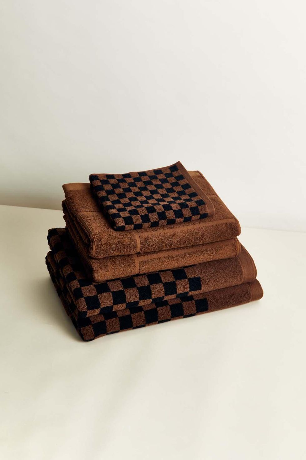 If you've been holding onto the same rag tag mix of towels accumulated over the years and don't love the way they look on the bathroom hook, make a swap. "Towels are such a personal day-to-day piece, not just in their physical and tactile application, but by way of aesthetic expression," Kennedy Nolan Director of Architecture Adriana Hanna says. "BAINA towels strike a wonderful balance of calming tones and geometric play that harmoniously elevate my own bathroom spaces." Jessica Nicastro of Jessica Nicastro Design says a boring item she swears by is a black honeycomb towel from French US. "It adds texture and a gradient of color into a bathroom that cannot be beat."