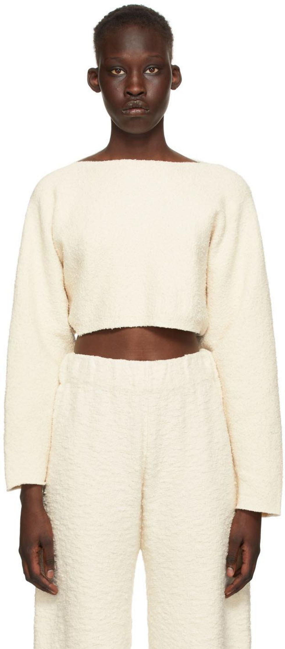 Now, there's something tantalizingly aspirational in the idea of bedecking yourself in layers of knits à la a lady who wears head-to-toe Lauran Manoogian or The Row. It's like staring comfort in the face and saying, 'I'm going to do this, but only in cashmere.' In the opposite direction, clingy knits can actually appear quite sexy. Knit dresses and separates like those at Eckhaus Latta are 2021's more refined version of the bodycon silhouette.