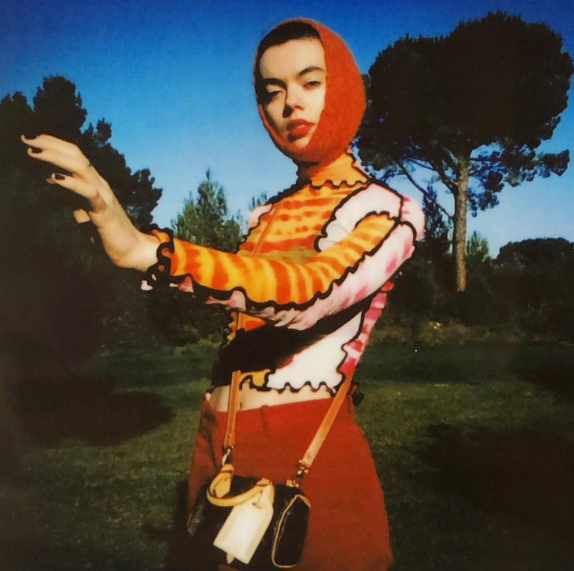 “Accessories help bring funky textures and new silhouettes to my outfits, so I try to pair them in a way that often contradicts my clothing in order to keep it ambiguous and enhance the look. I never like to be too much of this or that. I love clashing fabrics and patterns. My go-tos include a vintage Louis Vuitton silk scarf, vintage beige CHANEL bag,