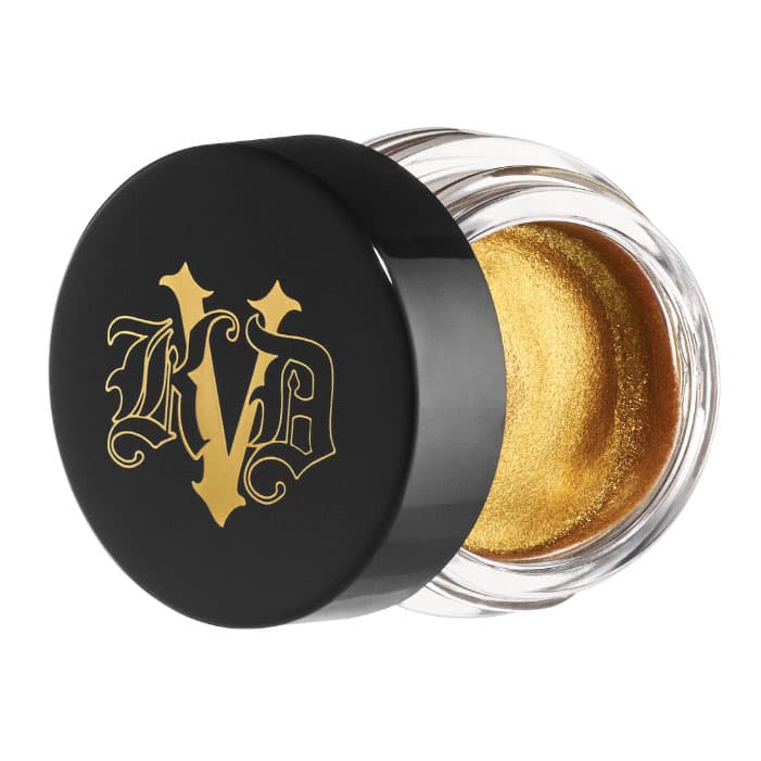 This multi-use gold gel is like pure liquid gold. I can use it as eyeliner, eyeshadow, over my lips, blended into my liquid highlighter for extra pop… I can even dot it around my eyes for a New Year