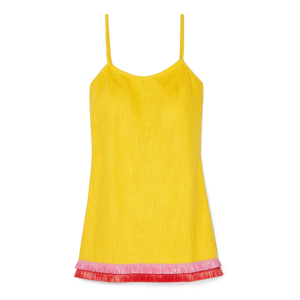 Doesn’t this just scream IT’S F*CKING SUMMER!? I love the color and the little colorful fringe that lines the bottom hem. It’s so fun! It can totally be dressed up, but for this weekend of patios and parks, I’m pairing it down with a pair of sneakers and my pup, Walter.
