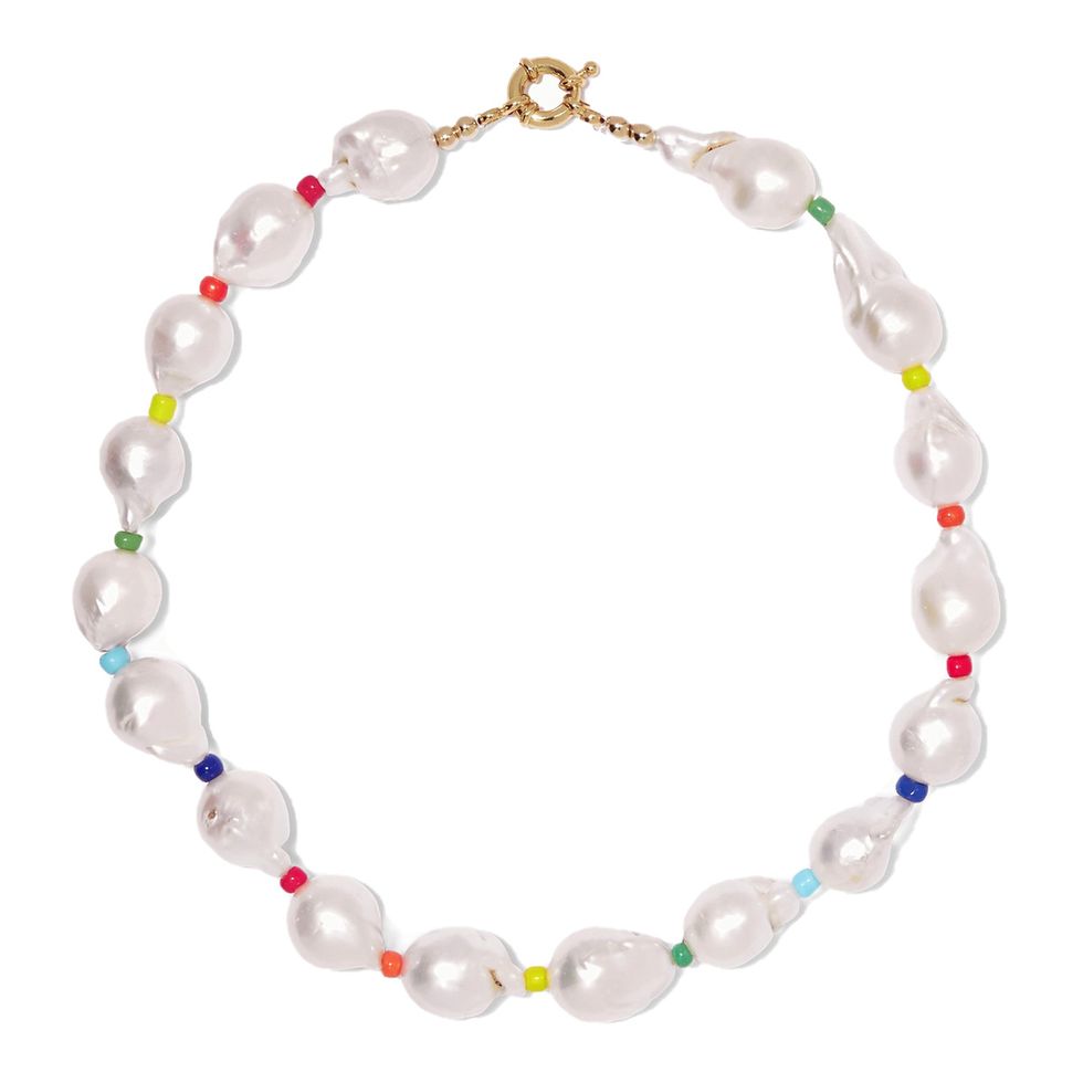 Fashion should bring you joy—a concept we sometimes forget in the midst of everything going on right now. It should be lighthearted and fun. It should make you happy. These days, while we’re living in t-shirts and shorts (which, we’re the first to admit, can also be fun), we’re turning to our jewelry to give us an extra reason to smile when we get dressed. While these nostalgic pieces are reminiscent of our childhoods, there is nothing childish about them—jewelry designers are elevating these retro concepts in extremely alluring ways. From barrettes to chokers, charm bracelets to beads, here’s how we’re inserting a little extra joy into our WFH ensembles.