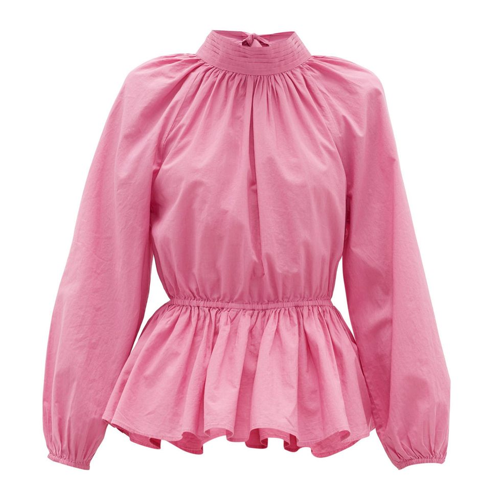 A great thing about revealing your back is that, to most people, this is a spot they are confident in, especially the upper realms. In most cases, open-back garments are universally flattering. These days the style is so prolific that the amount of coverage varies greatly from item to item. You can go all out with a revealing option like this Tove dress or stay on the demure side with this Frankie Shop piece that has a small cutout right in the middle of your back.