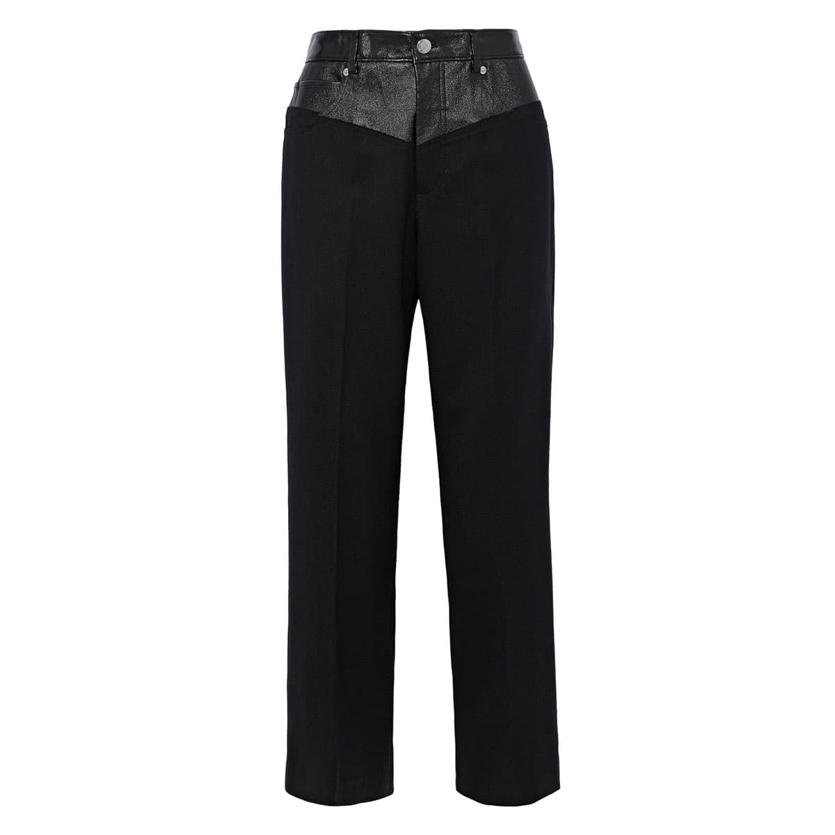 Helmut Lang Cropped Leather-Paneled Wool-Blend Straight-Leg Pants: