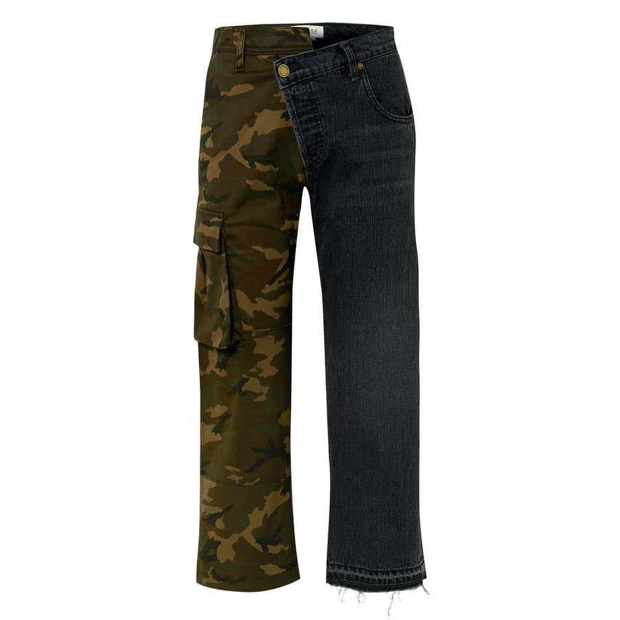 Monse Printed-Twill and Denim Straight Leg Pants: