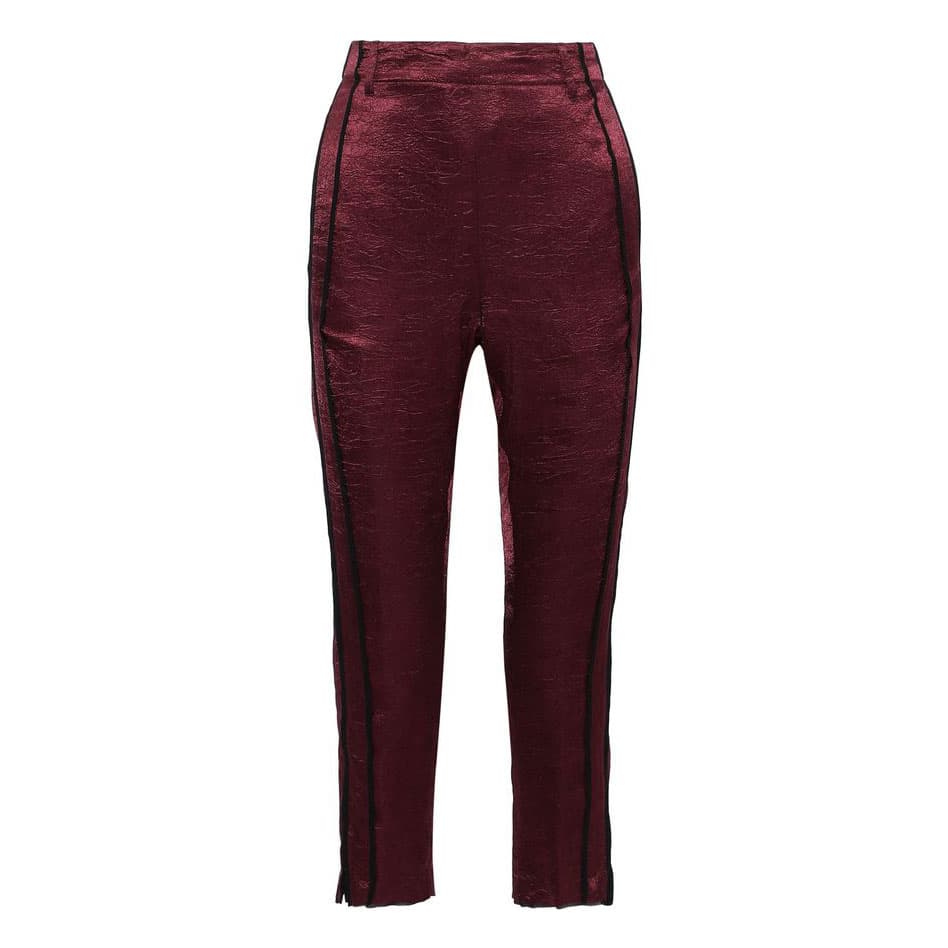 Now that skirts and dresses are getting difficult to wear with potential cool wind gusts that come with this season, I opt for a fancy pair of pants in a rich, yummy hue. I also love the nod to the tuxedo pant.
