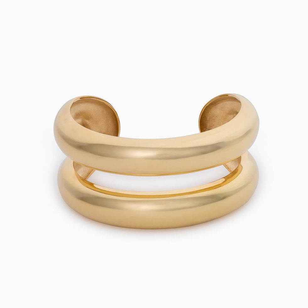 Lean into menswear with this innovative look from Tod’s by reaching for the classics: a crisp oversize button-down and a pair of black wide-leg trousers. The simple gold cuff adds the perfect touch of modern femininity.