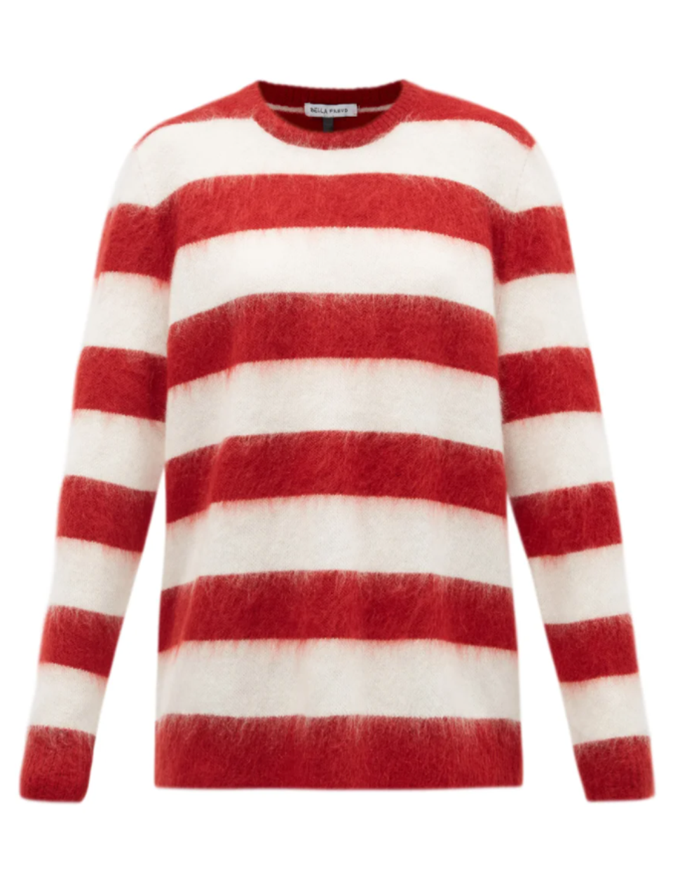 While the concept of this ensemble is nothing revolutionary, the mix of texture, color, and pattern is. Jason Wu has shown us how to subtly mix prints, layering a floral blouse beneath a striped sweater.