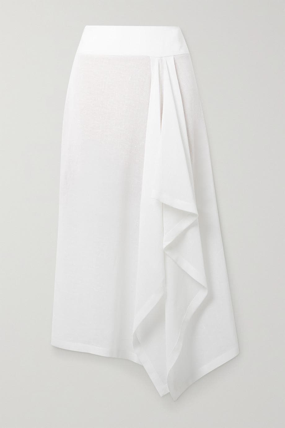 Collection Asymmetric Draped Linen Gauze Midi Skirt