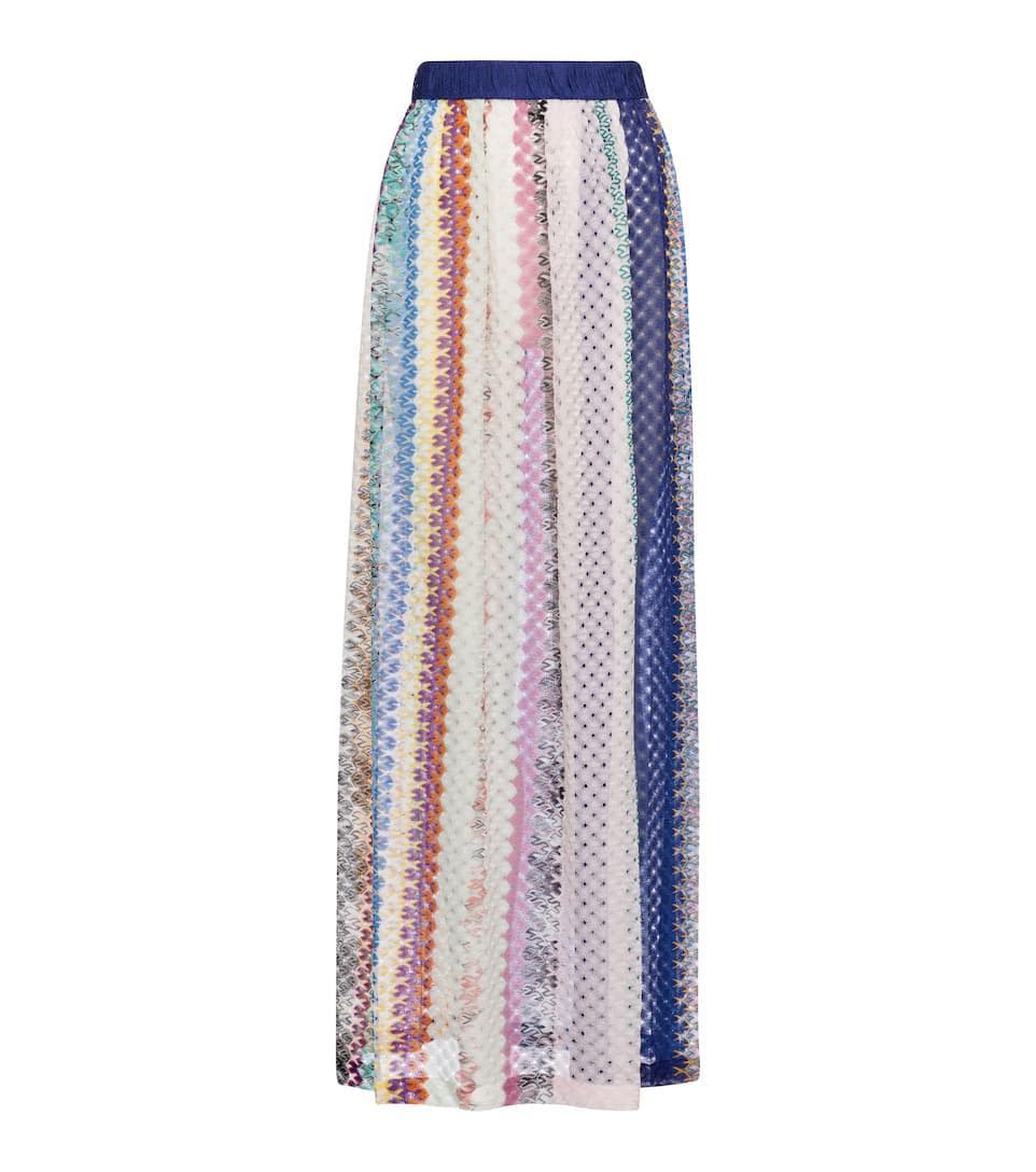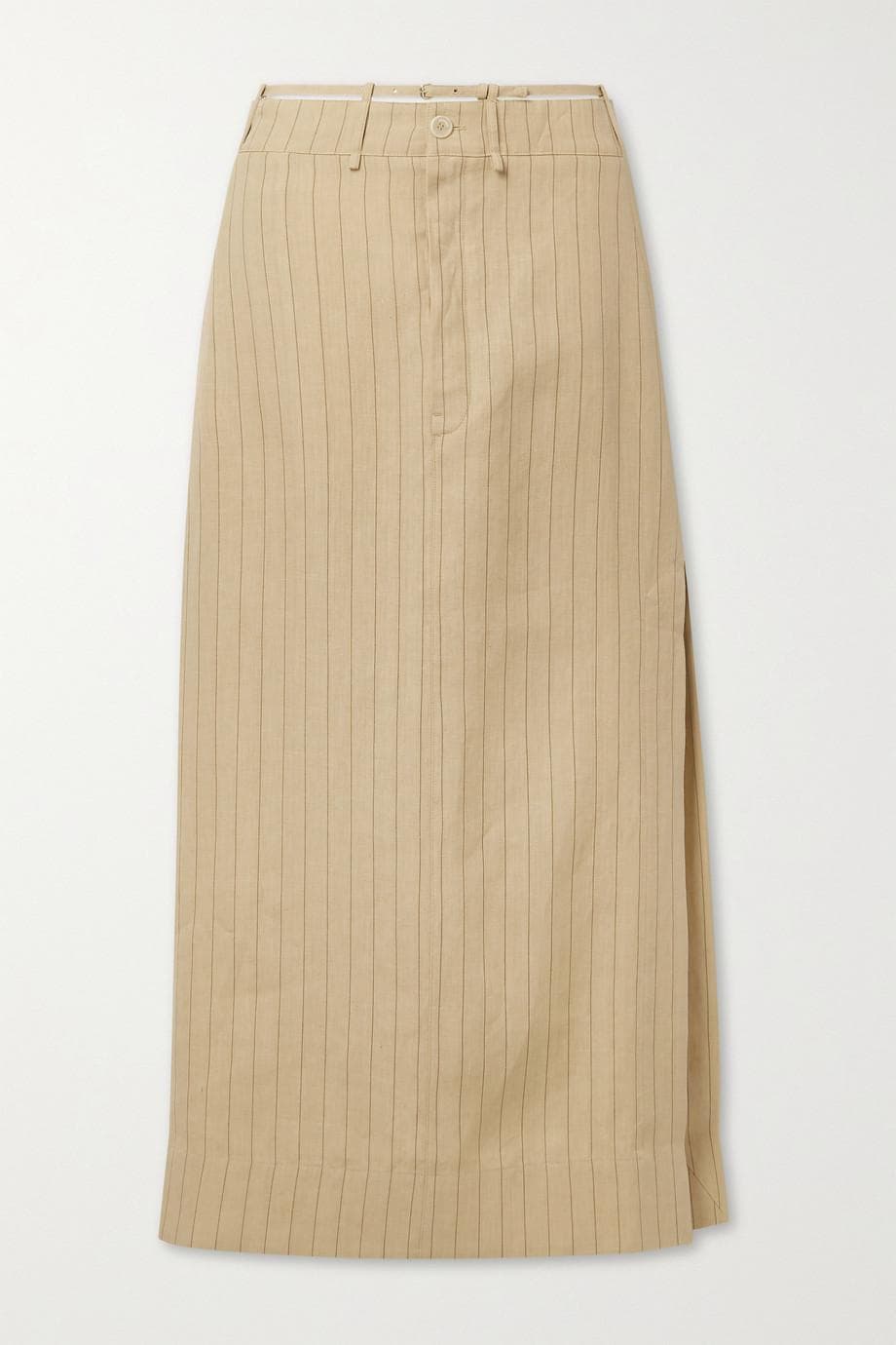 Terraio Cutout Pinstriped Linen Maxi Skirt