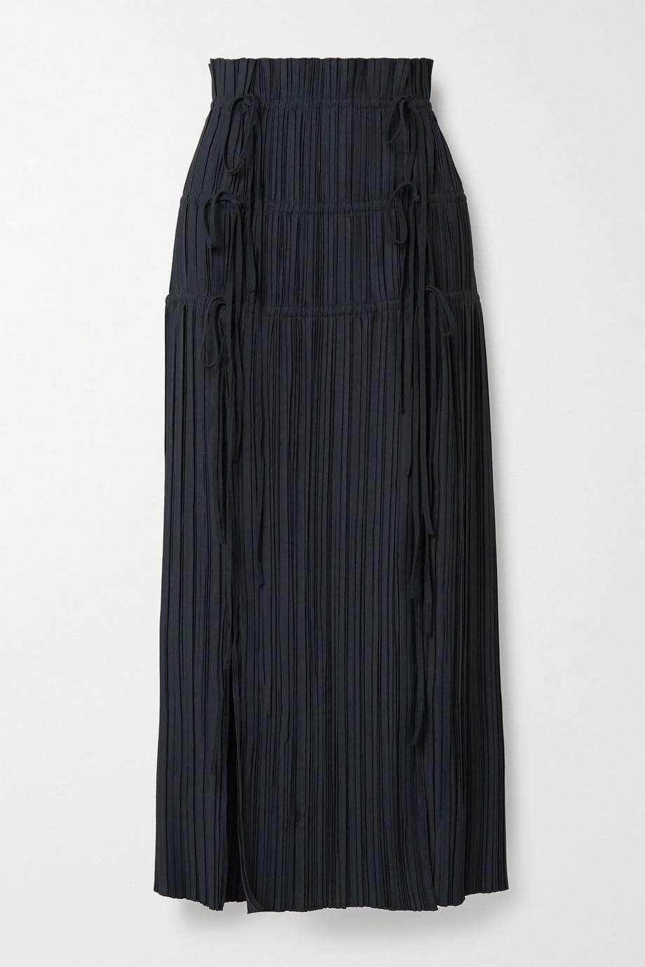 Tie-Detailed Plisse Crepe Maxi Skirt