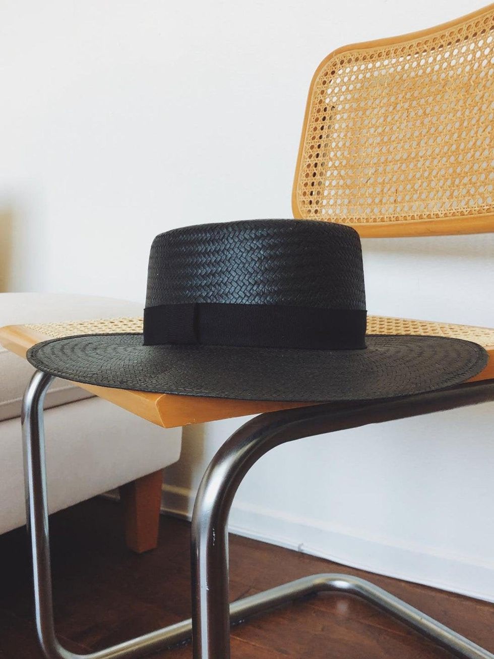 I am very picky when it comes to hats, but I found myself greatly enjoying the boater shape last summer. The black hue is an interesting riff on the typical straw colorway and is perfect for any minimalist.