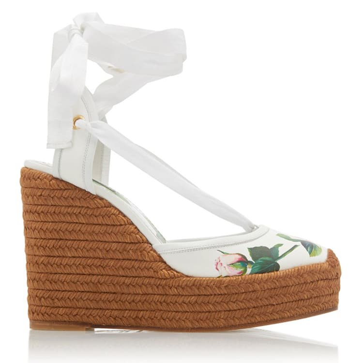 Floral-print Leather Platform Wedge Espadrilles