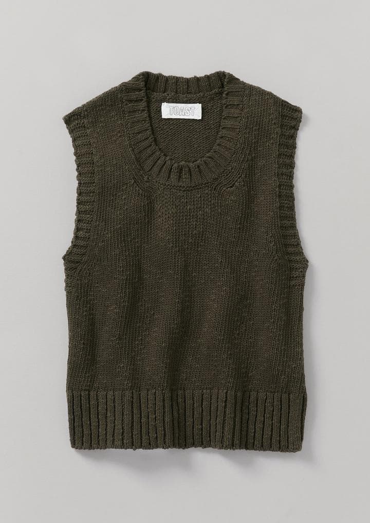 Cotton Linen Knitted Tank Dark Olive