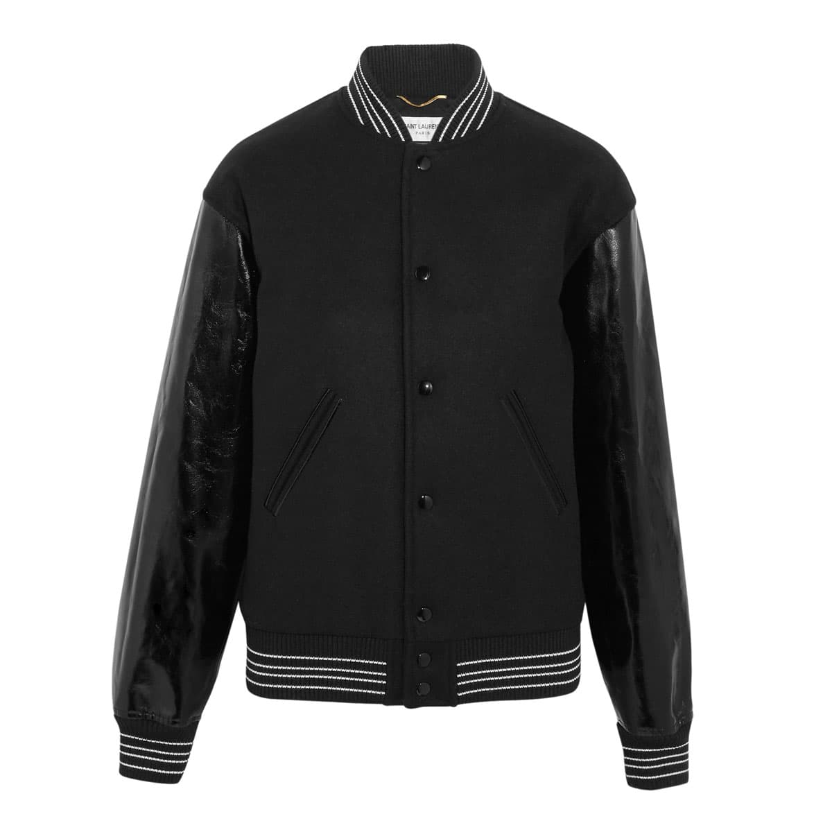 Saint Laurent Glossed Leather-Paneled Wool-Blend Felt Bomber Jacket: