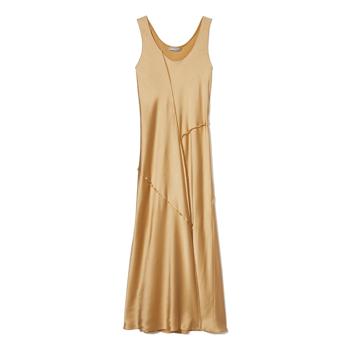 And colors, too! Luxe fabrics that still have a lot of movement are essentially seasonless. Take a golden raw-edge silk slip dress for example: The brushed gilt hue is light enough to not weigh you down on really bright sunny days, but warm enough to take you all the way into the cold months. It’s flowy enough to just pair with closed-toe mules, or layer on top of a tee or turtleneck. Your options are pretty much endless.