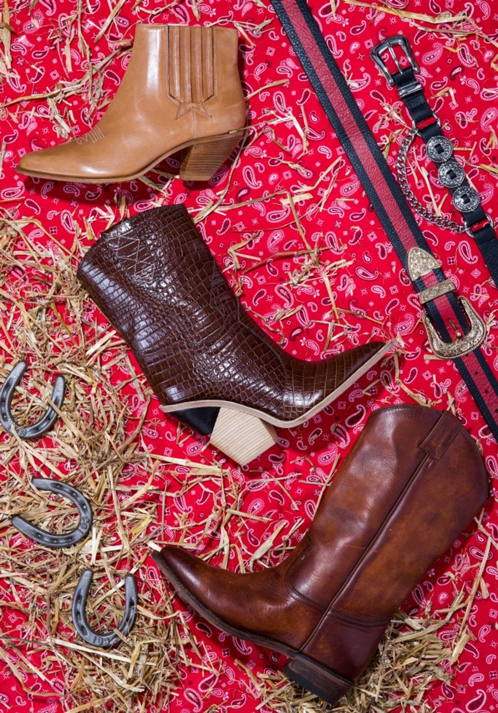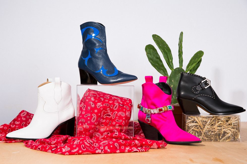 Now that the temperature has significantly dropped in NYC, fall is officially in full swing. While we’re not mentally prepared to swap our brightly colored dresses for brightly colored puffer coats, we are ready to embrace our favorite trend of the season: all things Western-inspired. After watching brands such as Fendi, Isabel Marant, and Calvin Klein champion Western style on the runway, we can’t wait to let our inner cowgirl run wild (in an elevated fashion, of course). You may not catch us on a ranch, but we're eager to sport the trend nonetheless. Check out our favorite Western-inspired footwear and accessories below, and take note: It’s all in the details.