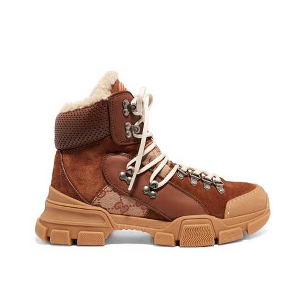 Maybe it’s the wave of new year’s resolutions to get healthy and spend more time outdoors, but the fashion industry is experiencing a new footwear trend: haute hiking boots. Designers from Ganni, Gucci, and Christian Louboutin (not to mention old standbys like Sorel) are creating heavy-soled stompers in a variety of colors and finishes. And aside from being generally comfier than the typical heeled booties we know and love, hiking boots have the same ugly-cute allure as chunky dad sneakers, especially when paired with an ultra-feminine prairie dress. Best of all, when you’re sitting at the office, watching an unexpected snowfall complicate your evening commute, you can rest assured that at least your feet will remain toasty warm. Fashion and function in 2019? Yes, please.