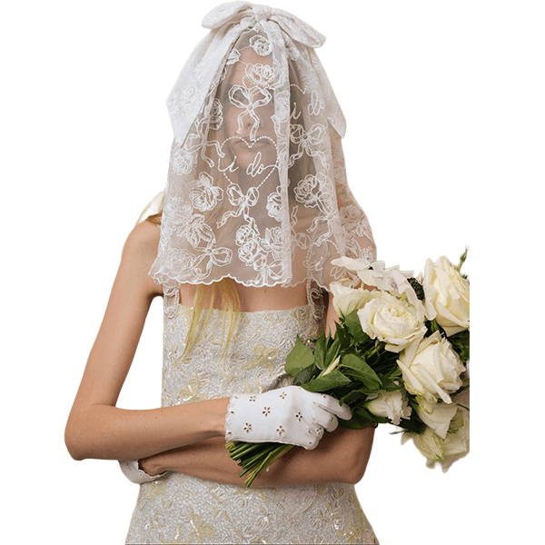 It's also very much about reinterpreting classic pieces and revisiting old trends—it's like incorporating details from past eras without actually wearing vintage. An ode to fashion history and embracing the cyclical nature of trends, arguably. "In a way, choosing a short veil can be compared to someone picking a more unique or updated take on a classic piece, like a pair of tabi flats versus standard ballet flats," Glayzer adds.
