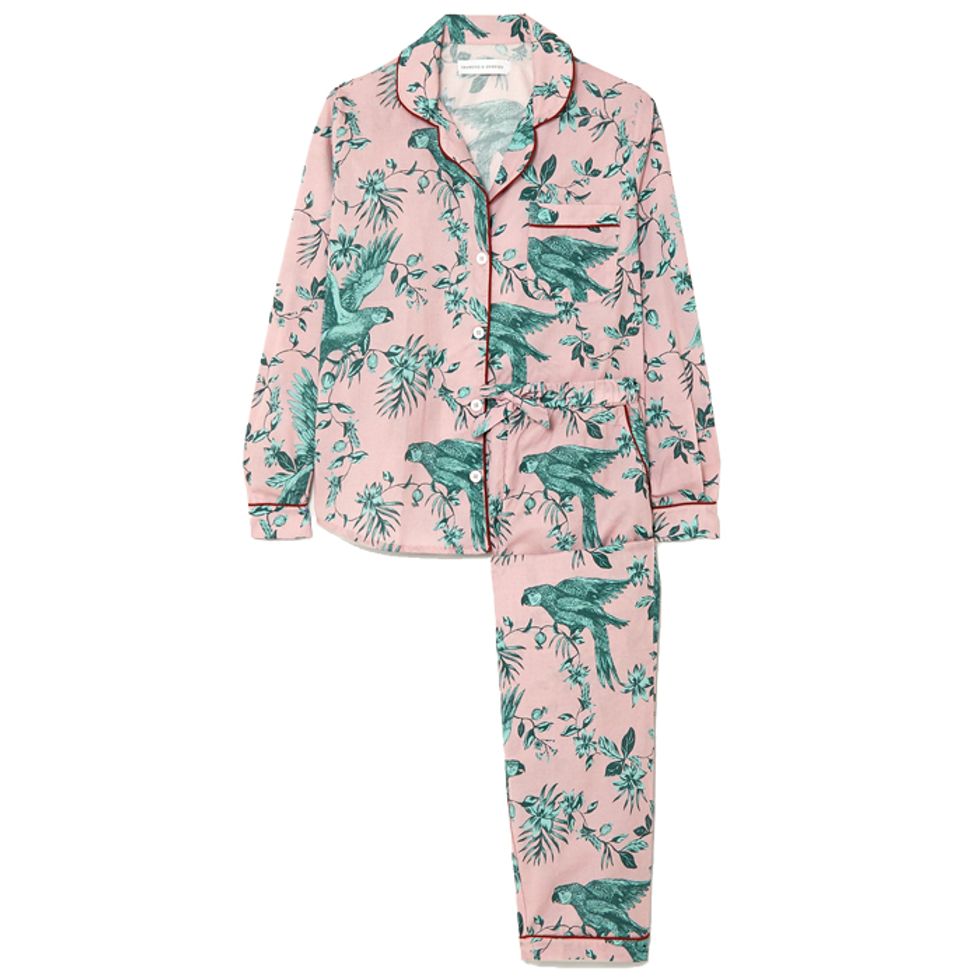 2. Desmond & Dempsey Bromlet Parrot Printed Organic Cotton-Voile Pajama Set: Here’s to wearing pajamas adorned with patterns in which one can become lost. They’re comfortable, breezy, and look extremely chic.