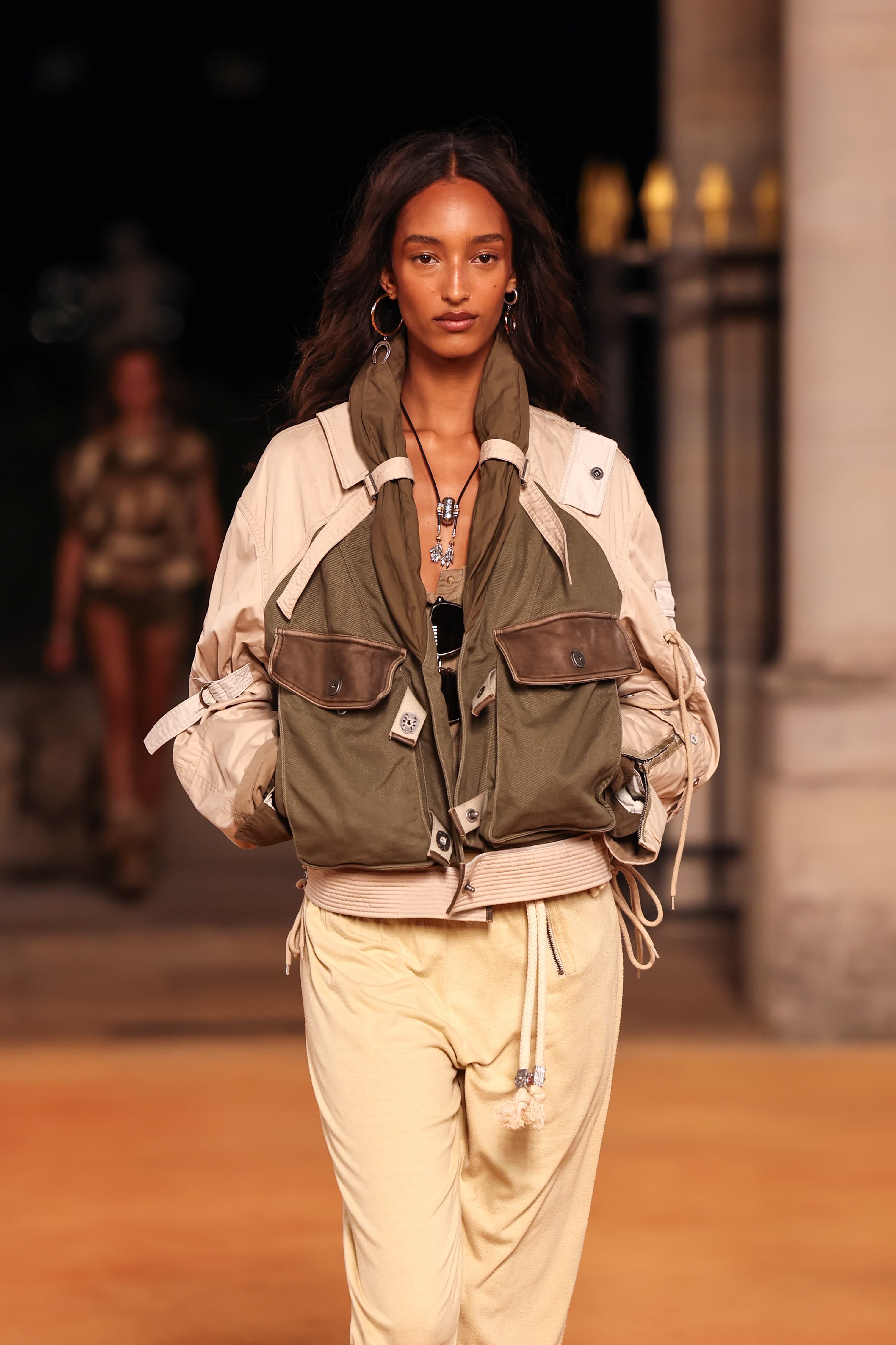 Bekker is deeply familiar with the brand, so no one was worried about whether or not she would be up to the task of replacing Marant’s 30-year tenure at the helm of her namesake brand. What came out on the runway last night was indeed quintessential Isabel Marant: the perfect bohemian French cool girl that Marant spearheaded all those years ago, wearing drill cotton cargo pants, surplus shorts, flirty blouses, oversized effortless coats, floaty dresses, et al.