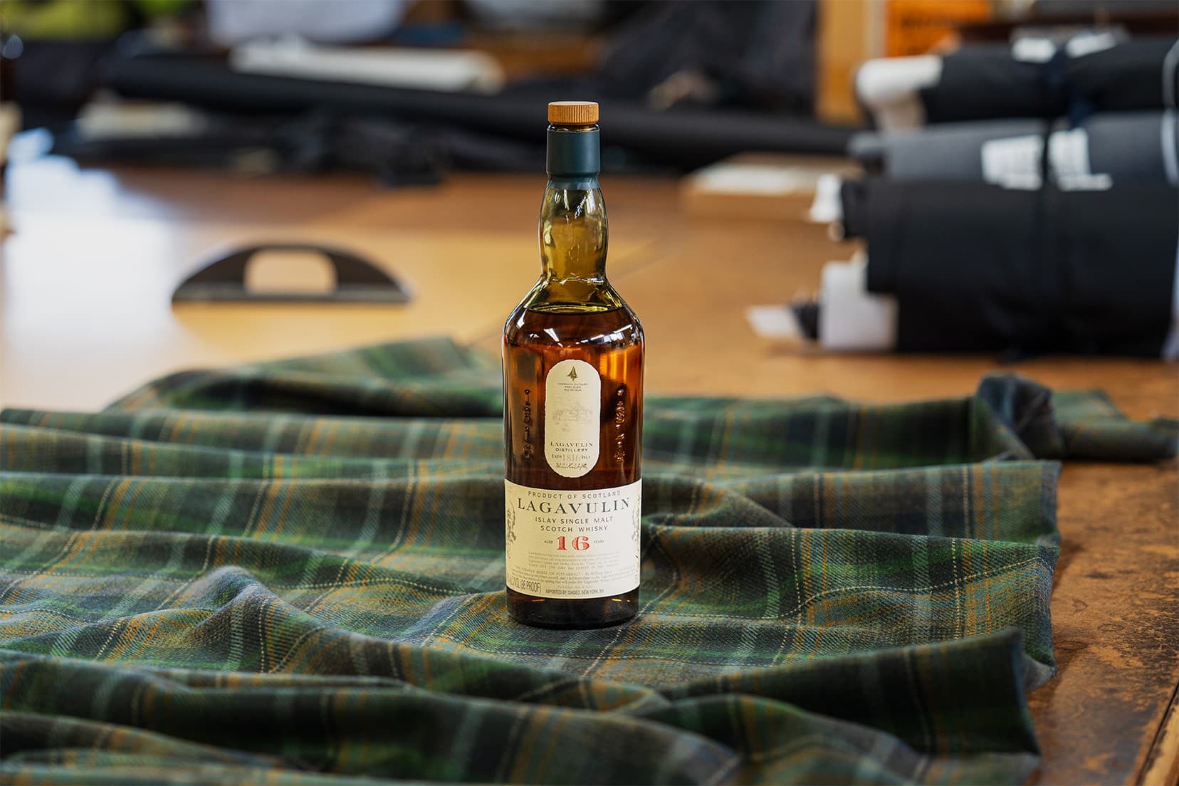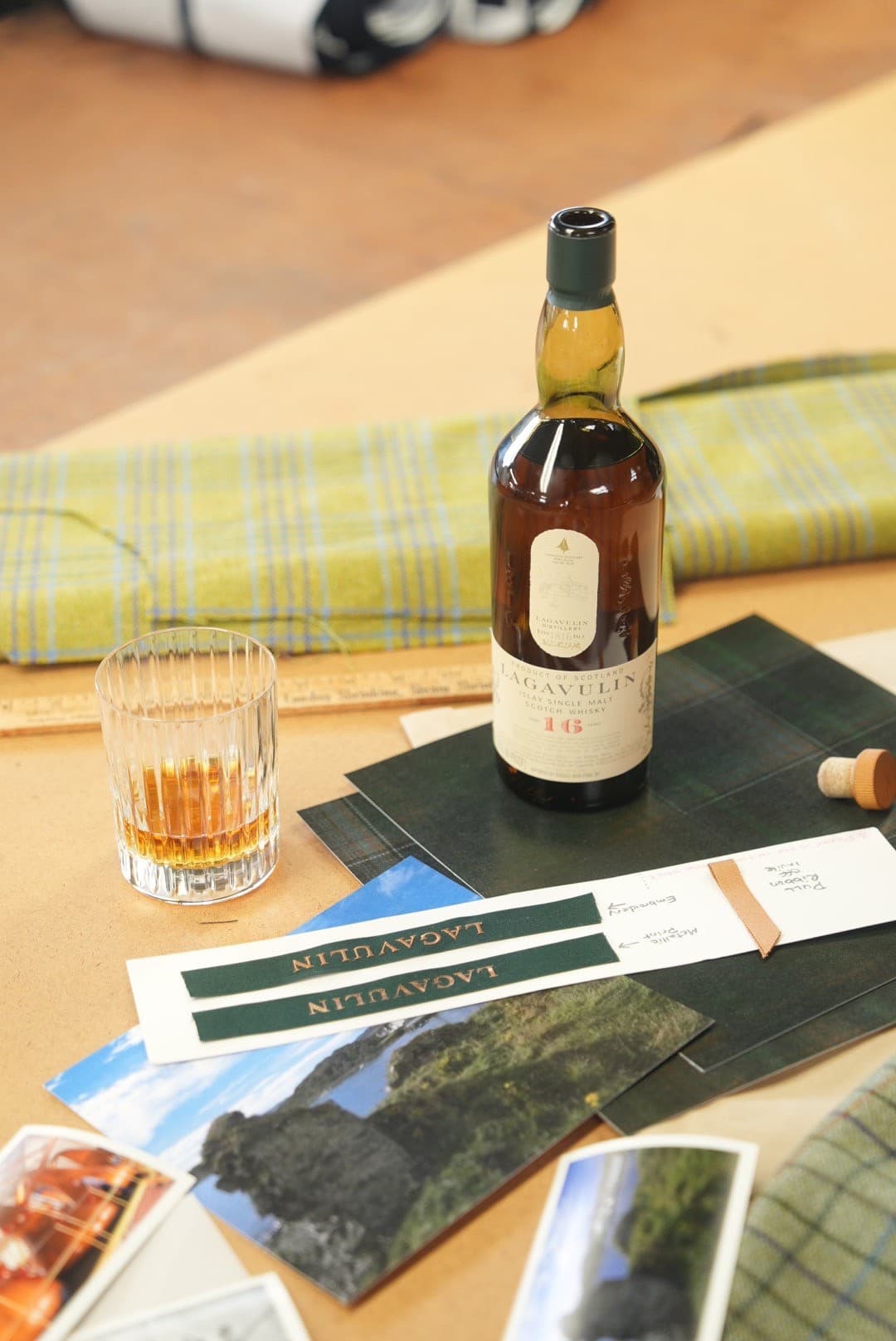 SG: “For me, the tartan isn’t just a single moment. It’s a foundation—a design language that Lagavulin can carry into different forms. It works in tailoring and apparel, as accessories, and even as an interior design element. Perhaps even some interesting utilitarian uses at the distillery itself, whether through distiller workwear or bottle label iconography. Already, we’ve pulled in so many friends from across fashion and design: tailors, mills, clothiers, paper makers, artists, embroiderers, photographers. Everyone brings their own craft into the fold, and the tartan takes on a new life in each of those hands.