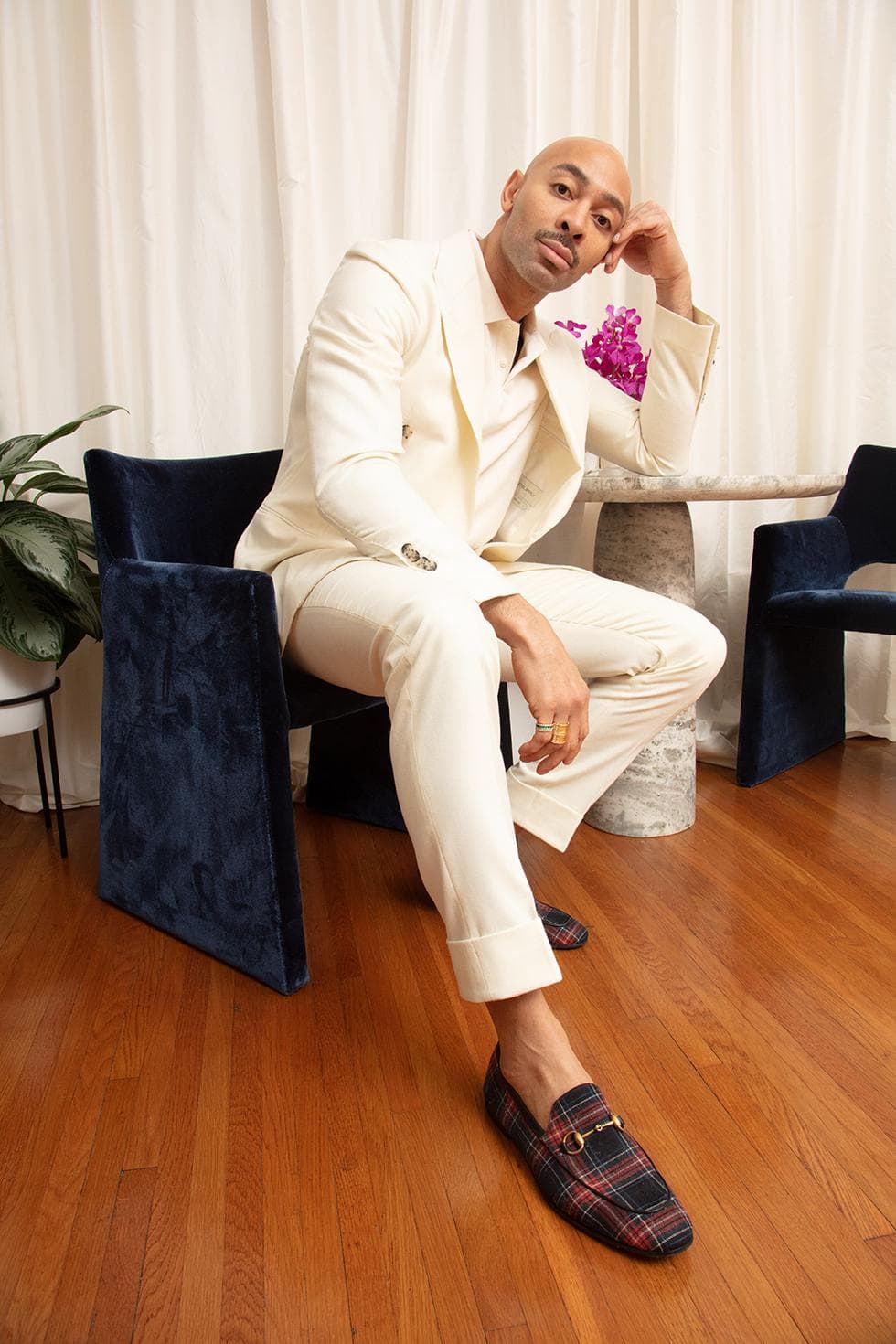 The pops of color throughout his home move the needle emotionally for him. “When I look at a room that provokes me to feel something, even when I talk about beauty, it raises my vibration. It's not something that you always see, it's something that you feel.” It’s a sanctuary, somewhere he can create flower arrangements, read, paint, and rest.