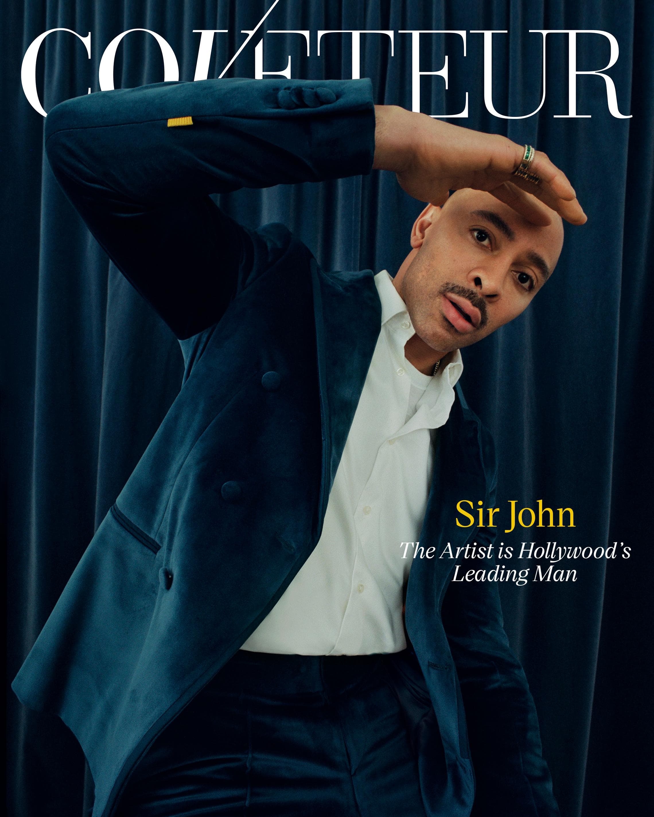Sir John operates at a faster speed than the rest of us, pushing creative boundaries while also holding a deep understanding of the business of beauty. “My mom always stressed that we should walk like we have somewhere to go. I don’t mosey along unless I’m with my friends,” he tells me over Zoom from his living room, a 15-foot velvet green couch resting on the walls behind him. “If you see me, I’m on my way, I’m walking fast, I have business to do.”