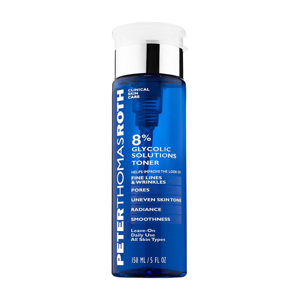 A few of her recommendations? “SkinMedica Rejuvenative Toner. [It] contains lactic acid, glycolic acid, citric acid, and malic acid. Each is a natural alpha-hydroxy acid (AHA) derived from bilberry extract, sugar cane extract, sugar maple extract, and citrus extracts that provides mild exfoliation to help enhance skin texture and reveal healthy new cells. The Peter Thomas Roth Glycolic Toner has an 8 percent concentration and combines [the glycolic acid] with aloe vera and witch hazel to soothe and exfoliate.” Just remember to be consistent with your product usage—using something one time won’t provide the results you’re after. But don’t worry—clear, glowy, and hydrated skin is in your future, we promise.