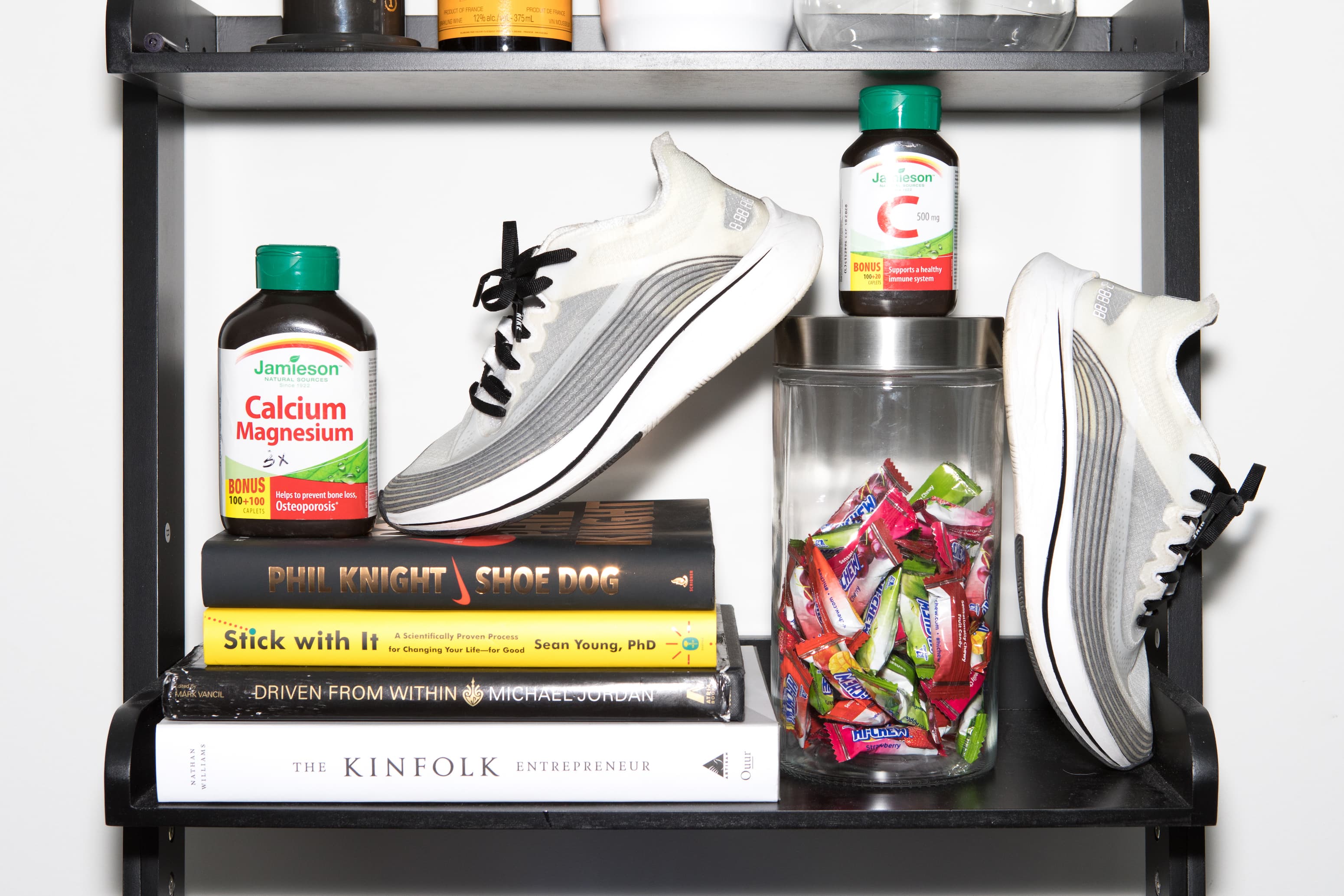 While she’s constantly on the go, between her creative work and maintaining a semblance of her personal life, she doesn’t claim to have mastered it all. She makes a real effort to carve out time for friends, needs serious help sticking to her newfound vitamin routine, and wears nice new sneakers to the gym (anything to get her motivated).