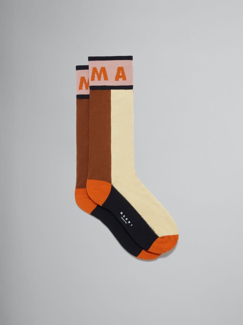 For color-blocking When in doubt, color-blocking is a surefire way to amplify simple pieces. The same can be said for socks. Marni makes a compelling case with chic colorways such as Dahlia/Purple, Pale Sky, and Dust Apricot (my personal favorite)—a palette for anyone and any time.