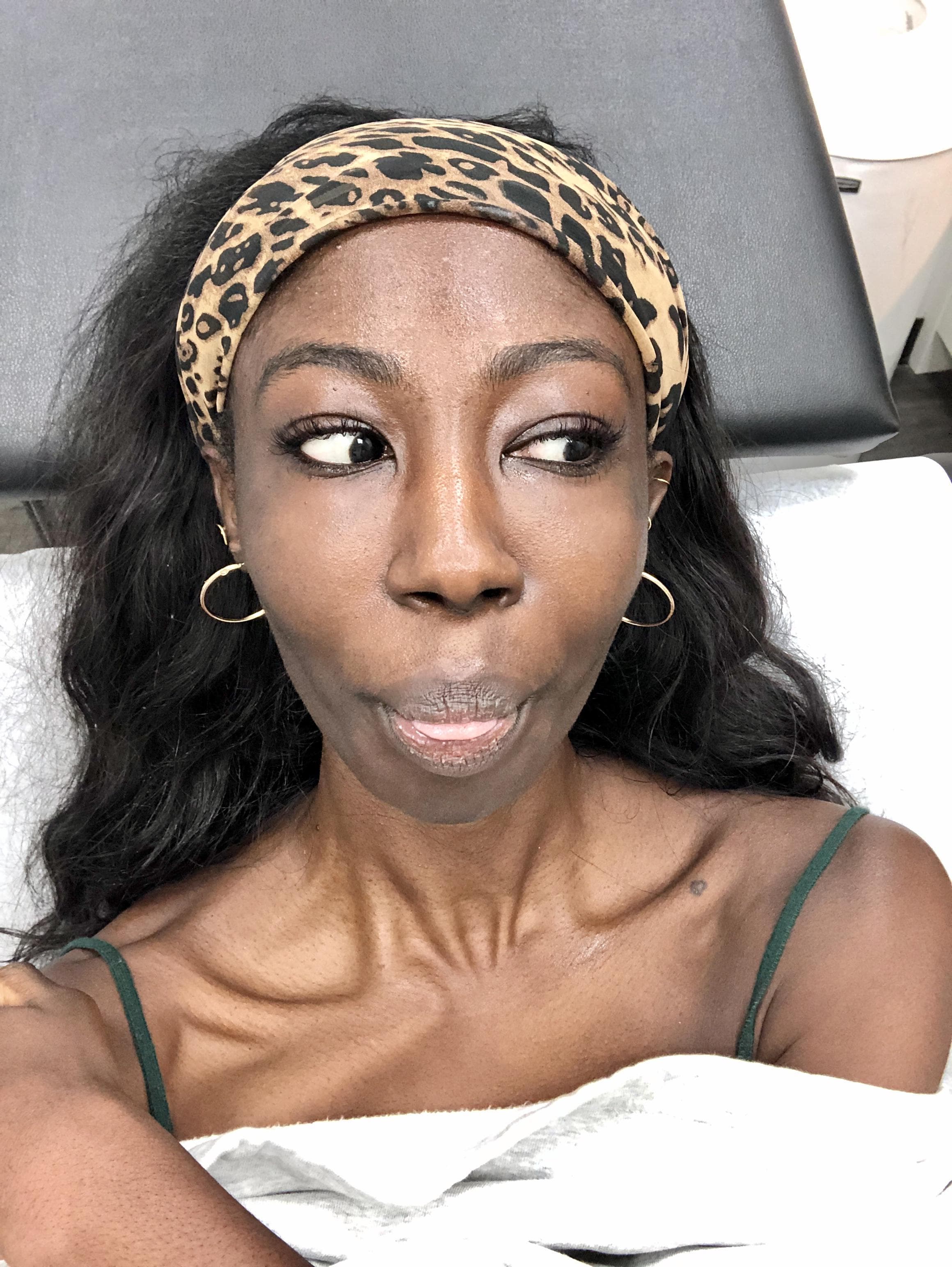 Me, immediately following a Sofwave treatment on my face and neck. Photo: Courtesy of Ama Kwarteng