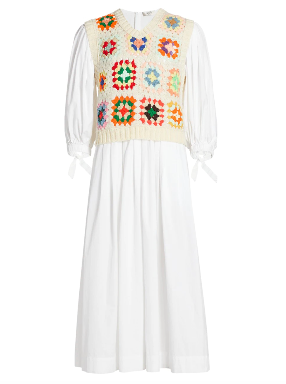 The convergence of a '70s hippie and a trendy Brooklynite, the crochet trend received the Ella Emhoff seal of approval circa the inauguration. In terms of luxury fashion, the technique has been spotted on runways from CHANEL to Eckhaus Latta to Celine. "There is also something undeniably comforting and cozy about the colors, patterns, and blankets that have been passed down from previous generations," explains Winzia of The Series.