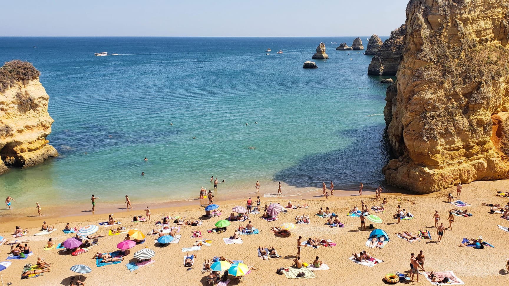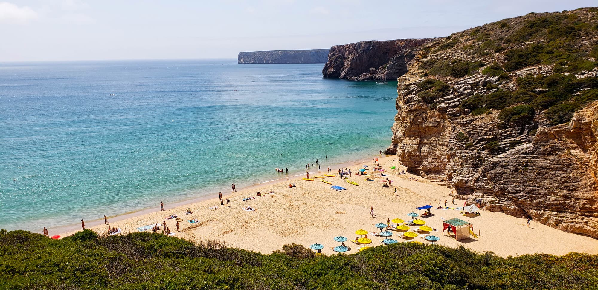 , a quiet little sandy oasis away from the crowds of Lagos. It’s a steep climb down some sandy stairs, so take off your flip-flops and hold on to the railings. Once you make it down, post up for the afternoon by the turquoise water and high cliffs to nurse your digital (and otherwise) hangover.