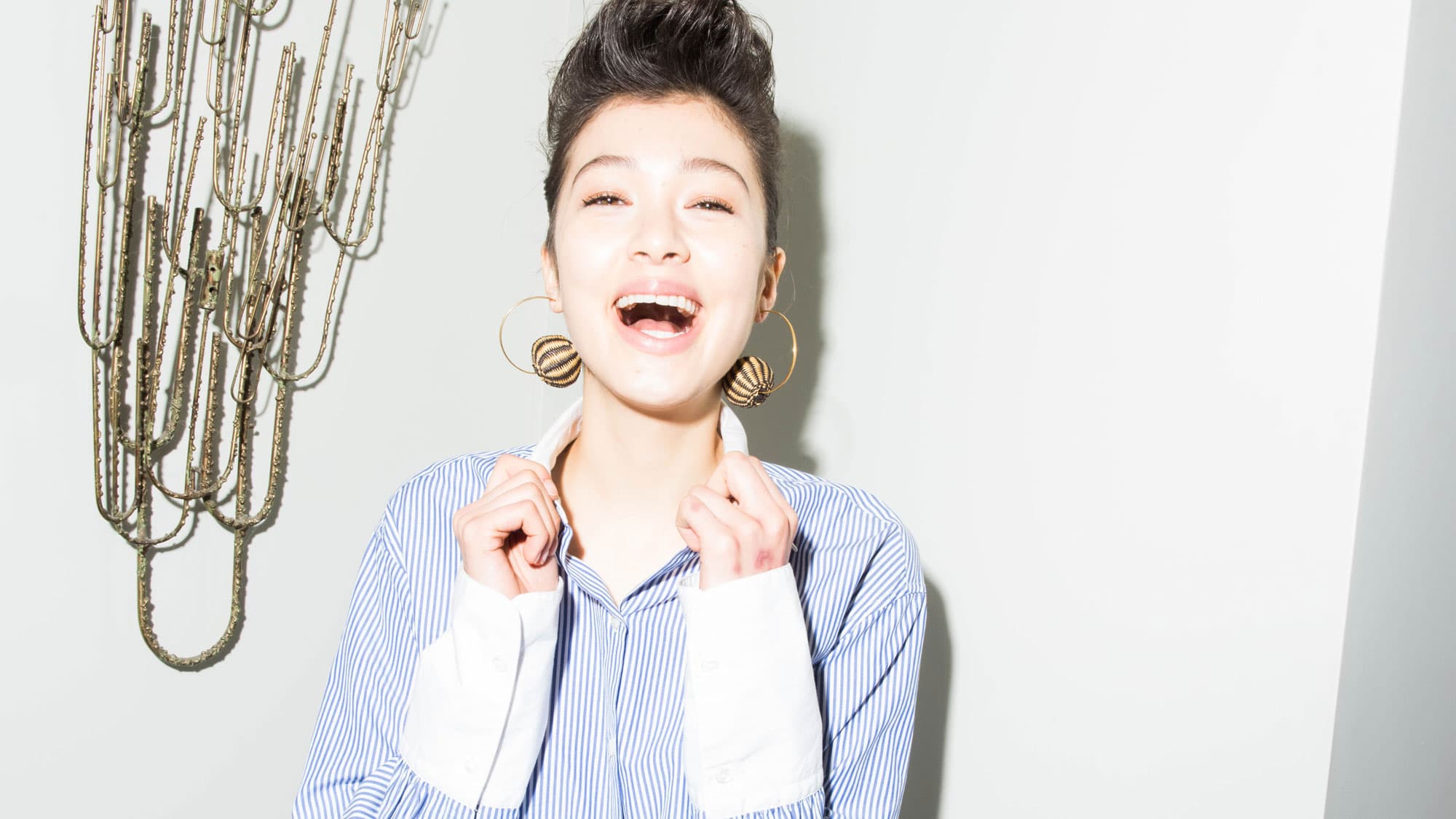 In your quest for the perfect striped shirt, you’re probably going to come across an option or two with cool embroidery for a little contrast. Amplify the effect with a matching statement earring, like these ones by Ranjana Khan.