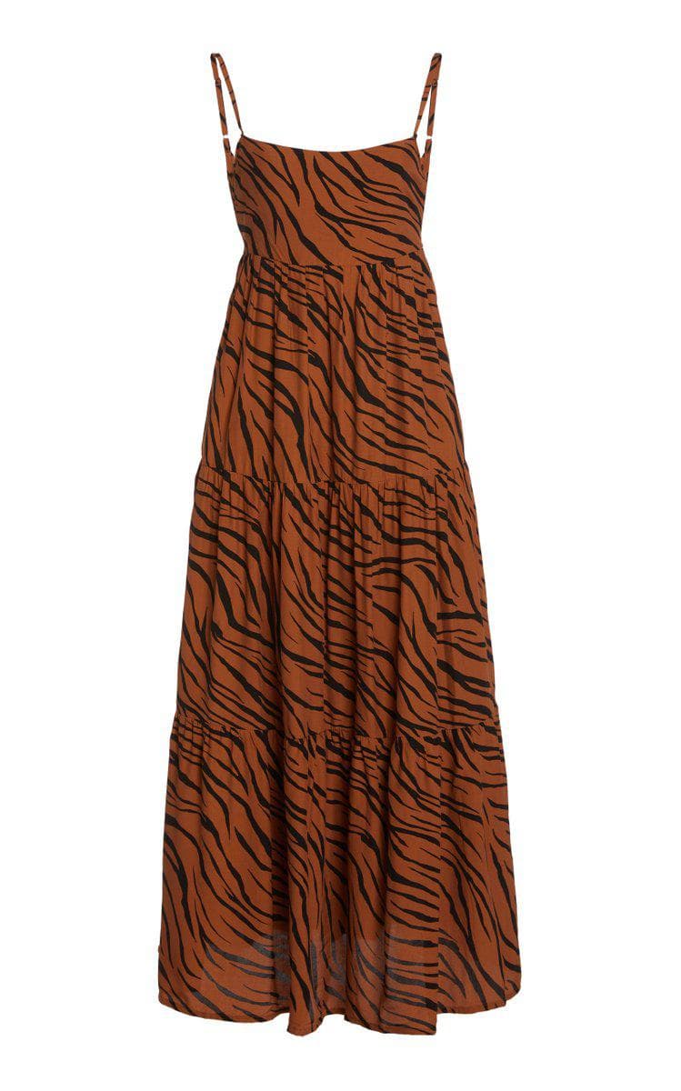 Corvina Tiger-Print Crepe Tiered Midi Dress
