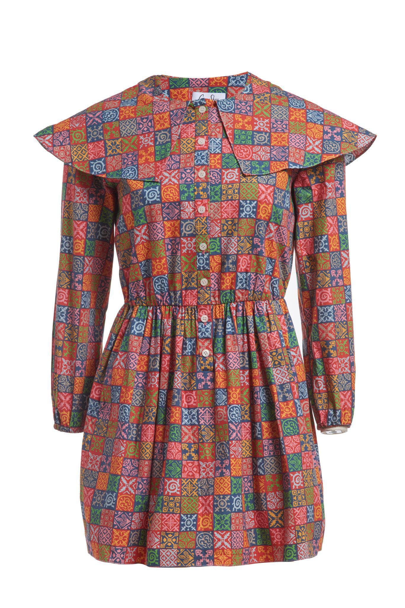 Mini Collared Dress in Navy Checkerboard