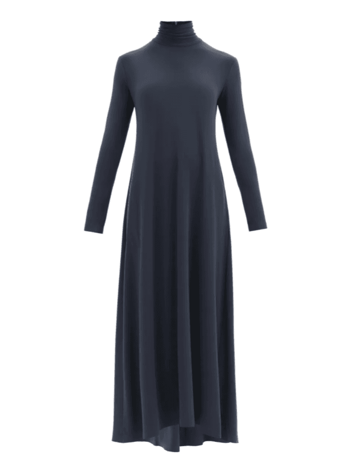 Swing Roll Neck Flared Longline Jersey Dress