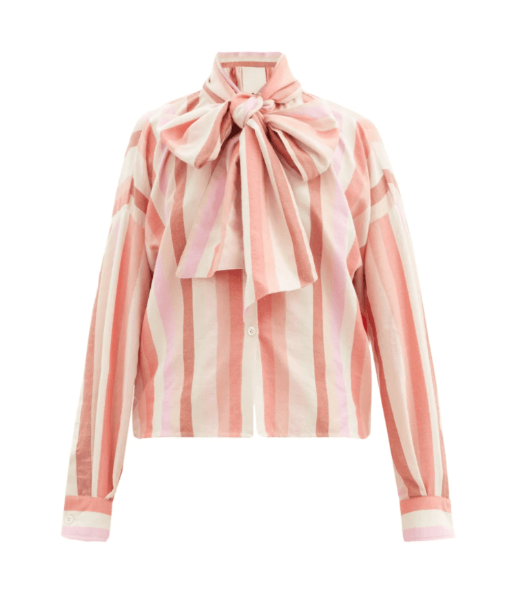 Bow-Front Striped Cotton Blend Oxford Shirt