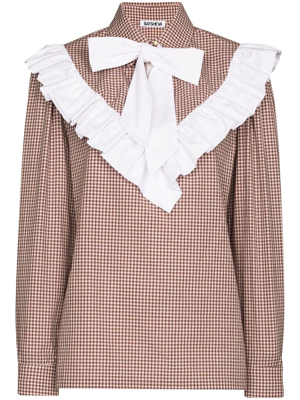 Carol Ruffled Gingham Bowtie Blouse