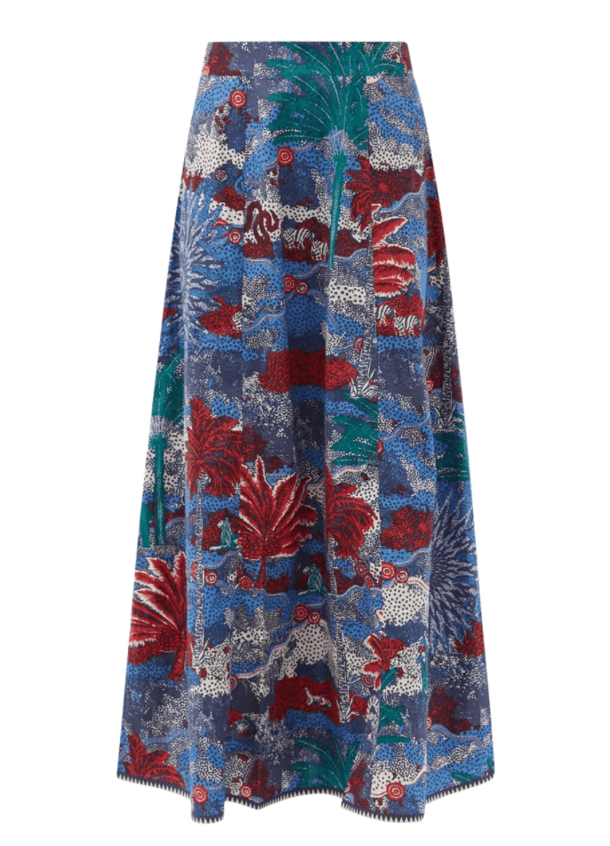 Camille Tree-Print Cotton Maxi Skirt