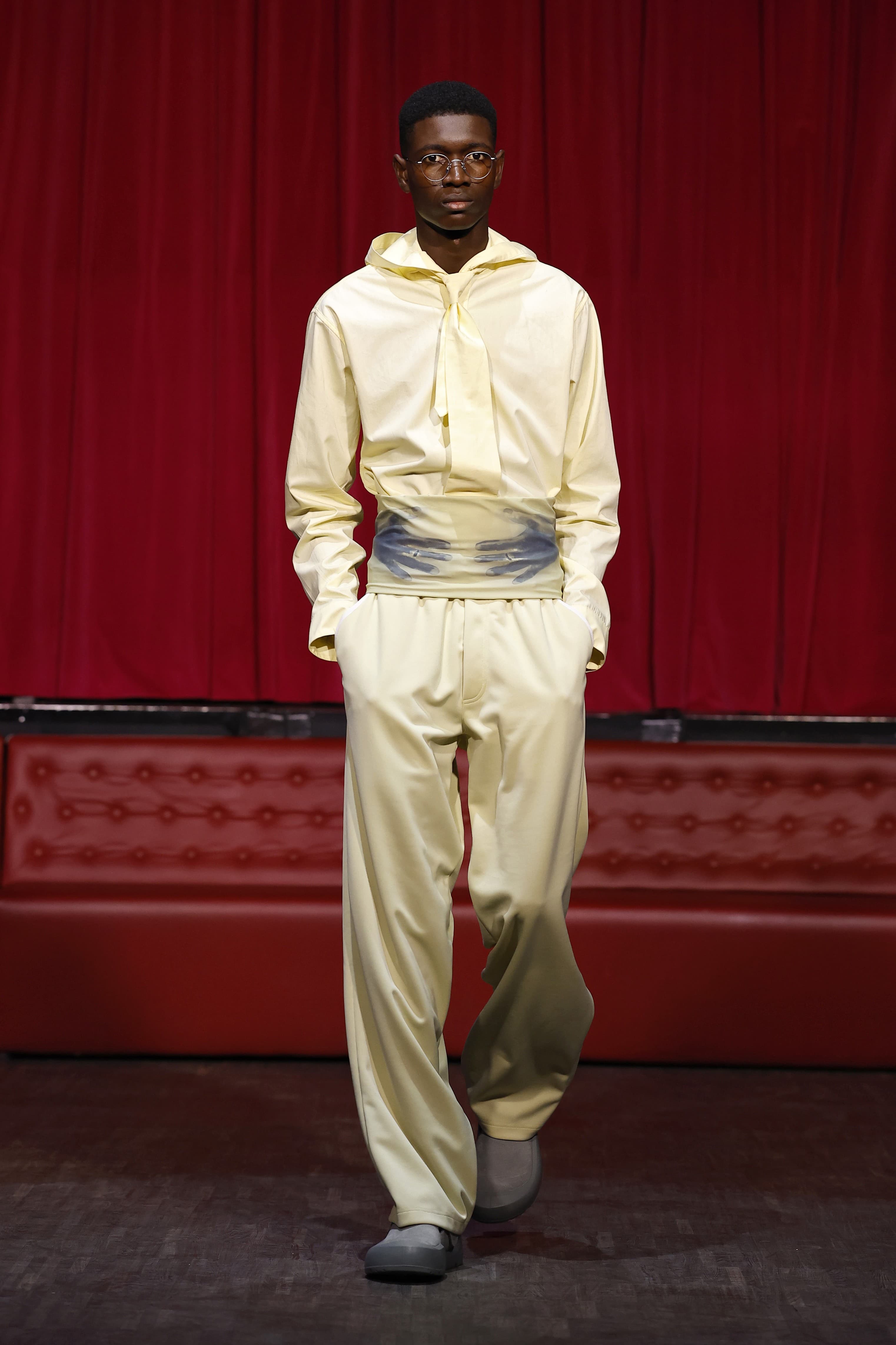 Saul Nash Spring 2026 Menswear Getty ImagesI love the idea of this lounge suit material worn with a tonal tie over a hoodie. Is this the new business casual?