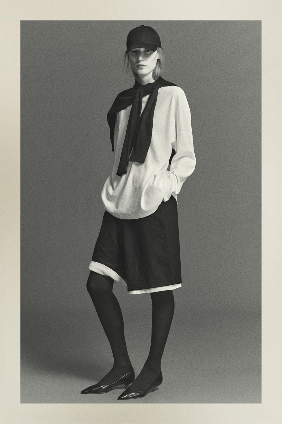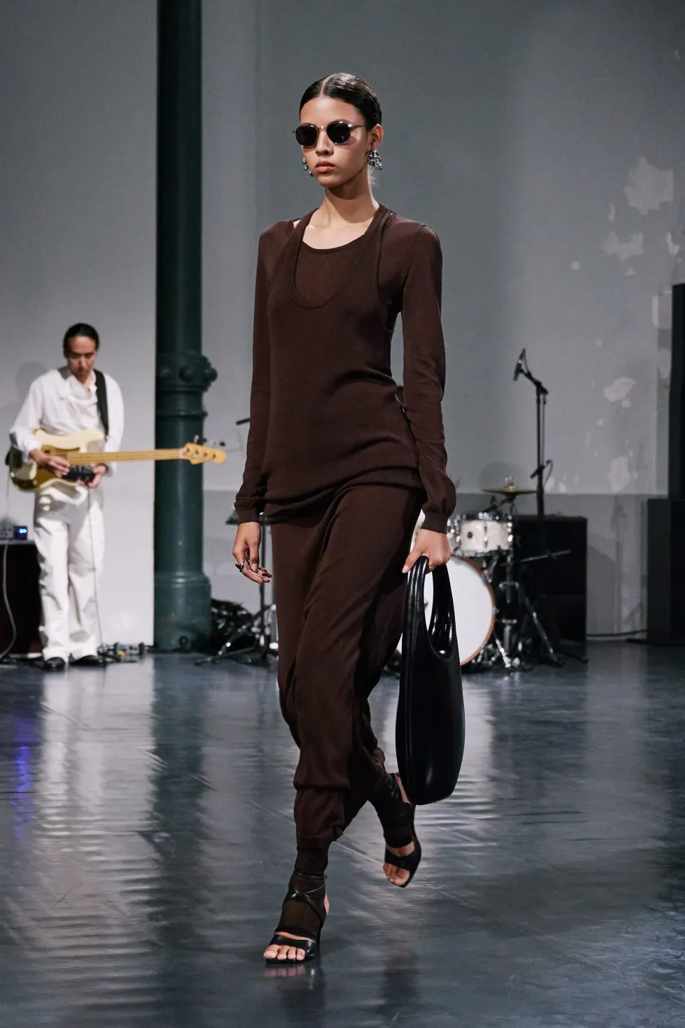 The versatility here is what feels like what we need and want from The Row. A simple, overtly casual look is so slightly dressed up with an opaque stocking and leather pump.