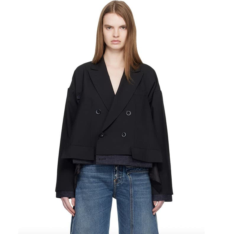 Sacai Black Suiting And Denim Blazer
