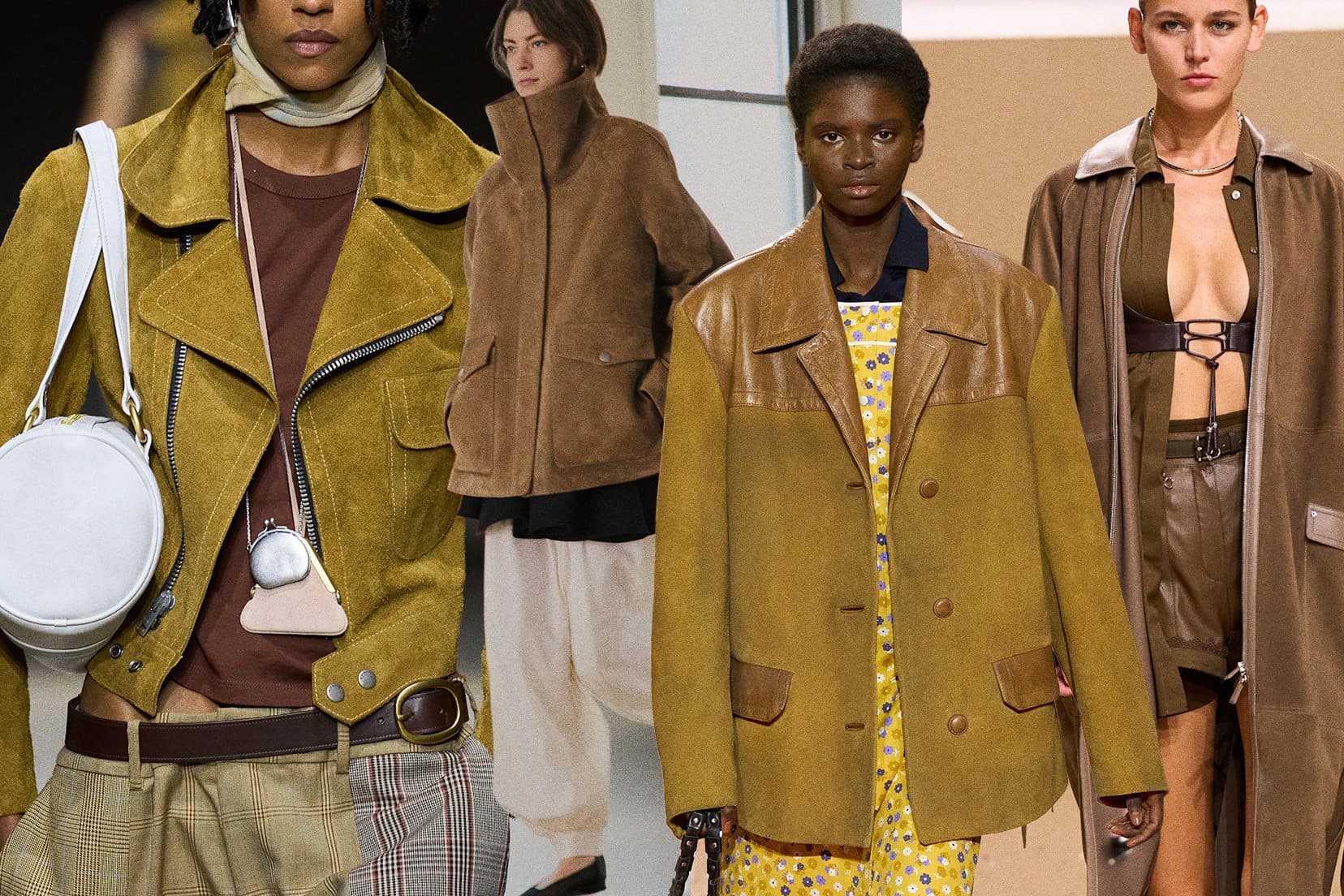 Coach SS26; Altuzarra SS26; Miu MIu SS26; Hermés SS26 LaunchmetricsWhoever said that suede was meant for fall and winter hasn’t seen the Spring/Summer 2026 runway offerings. Picture this: a slightly breezy spring afternoon or summer night and a long suede Hermés coat, high-neck Altuzarra jacket, suede Miu Miu bomber jacket, or suede Coach biker moto jacket slung over your shoulders. Designers gave us endless suede jacket silhouettes to consider—the options are endless.