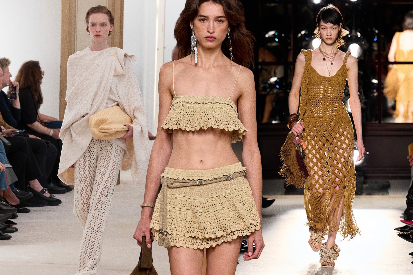 We took note of crochet’s revival throughout Copenhagen Fashion Week in the form of cold weather accessories. We also know very well that crochet has the power to transcend seasons—a crochet scarf for winter and a crochet dress for spring as presented in Balmain’s spring 2026 collection, for example. Other designers made a case for crochet in the forms of pants, skirts, and matching two piece sets.