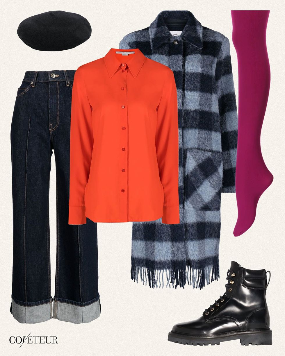 Black hosiery—sheer or fleece-lined depending on what side of 45 degrees we are on—is a staple for winter. But by March, I am itching to experiment. In anticipation of spring, one of my favorite ways to expand my sartorial comfort zone is with bright tights, an easy way to add a bit of unexpected color to an outfit. While royal blue or dandelion yellow stockings can be intimidating to style at first (one doesn’t want to look like a Smurf or Minion, respectively), the dopamine from trying something novel and colorful is worth the risk. Whether you are going for a ’60s French New Wave moment or looking to spice up your usual going-out ensembles, here are three ultra-wearable ways to wear colorful tights.
